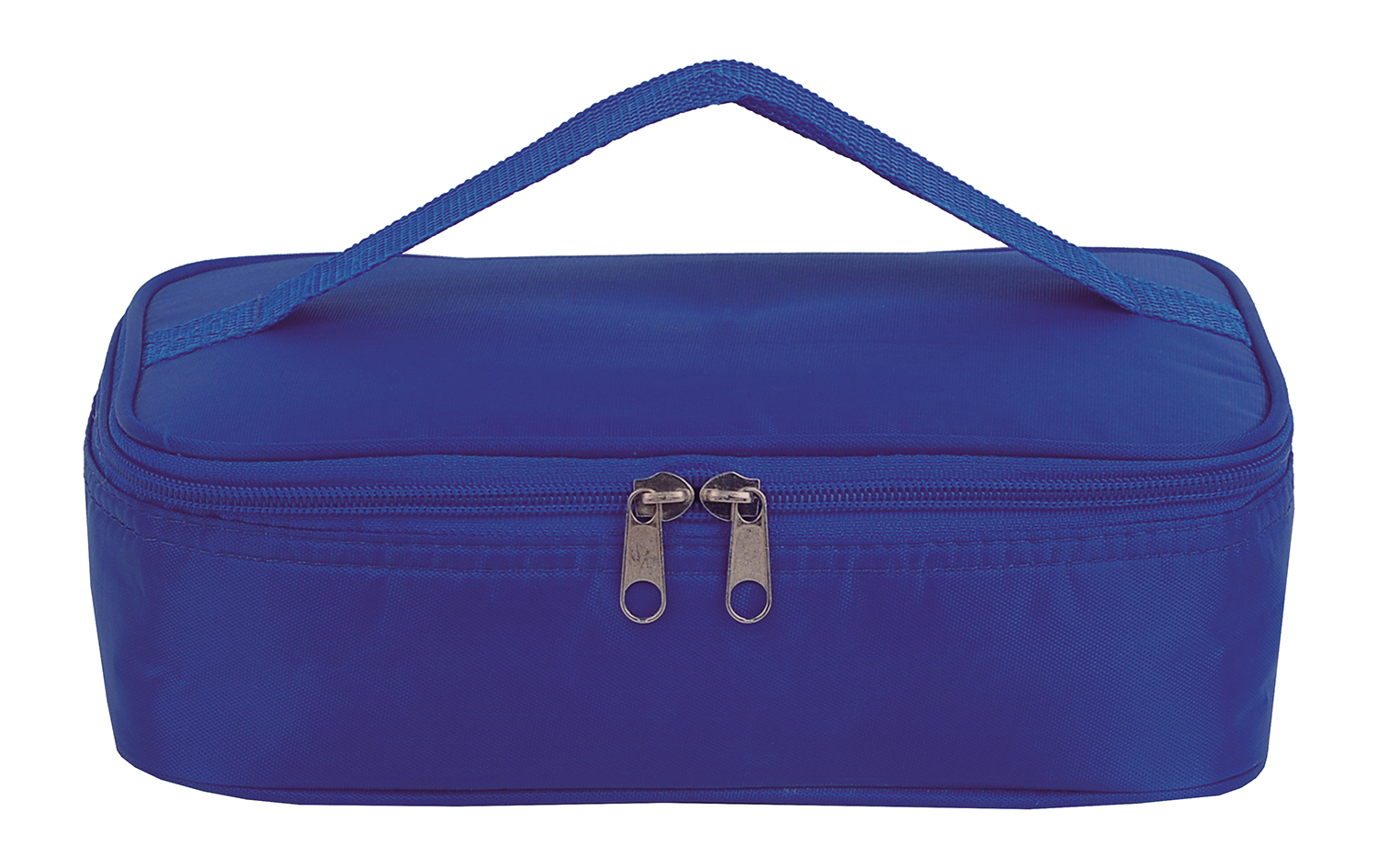 24 x 16 x 6 cm. Polyester – Interior Foil de Aluminio. Nevera Lonchera con cierre perimetral. Forro de aluminio que permite conservar la temperatura.